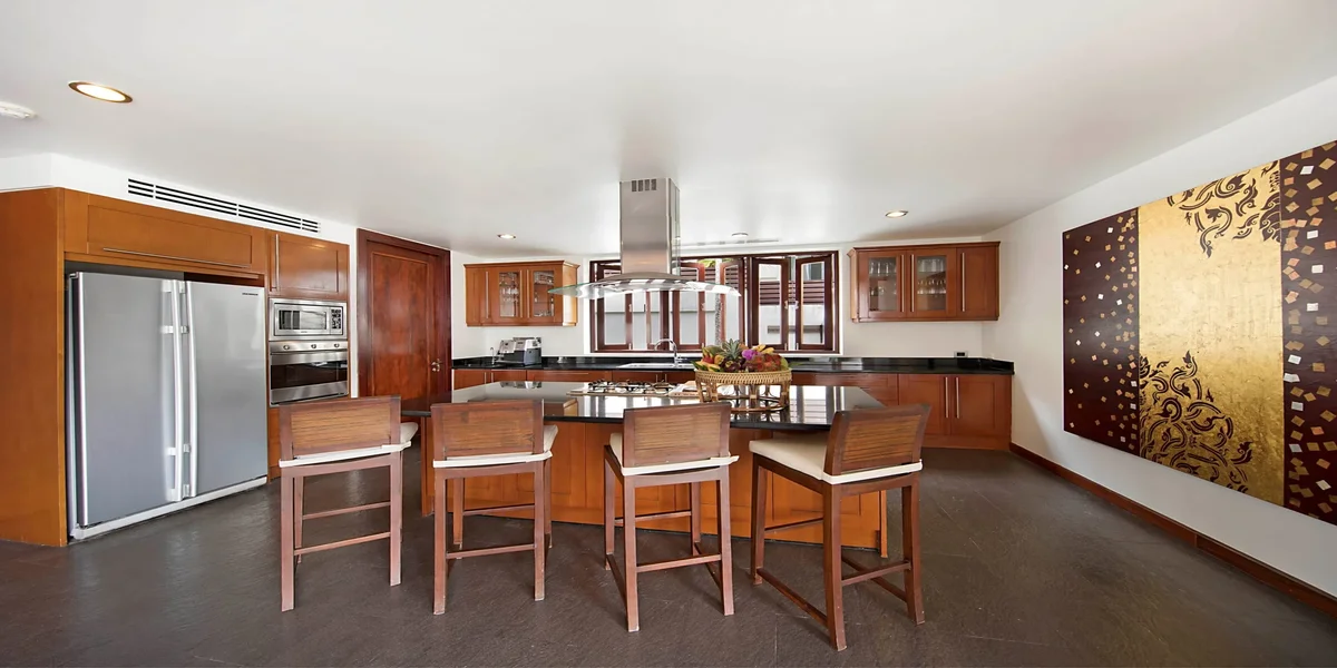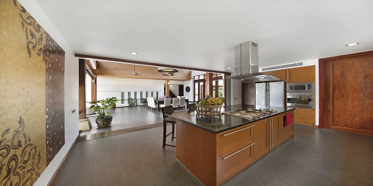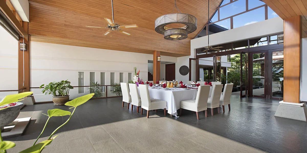 En el exterior, la piscina privada con cascadas se convierte en el centro de la vida de la villa. Rodeada de tumbonas, jardines y zonas de descanso, ofrece un ambiente relajado para disfrutar del clima tropical. Con chef privado, personal dedicado y acceso directo a la playa, esta villa es perfecta para unas vacaciones tranquilas en la costa oeste de la isla.